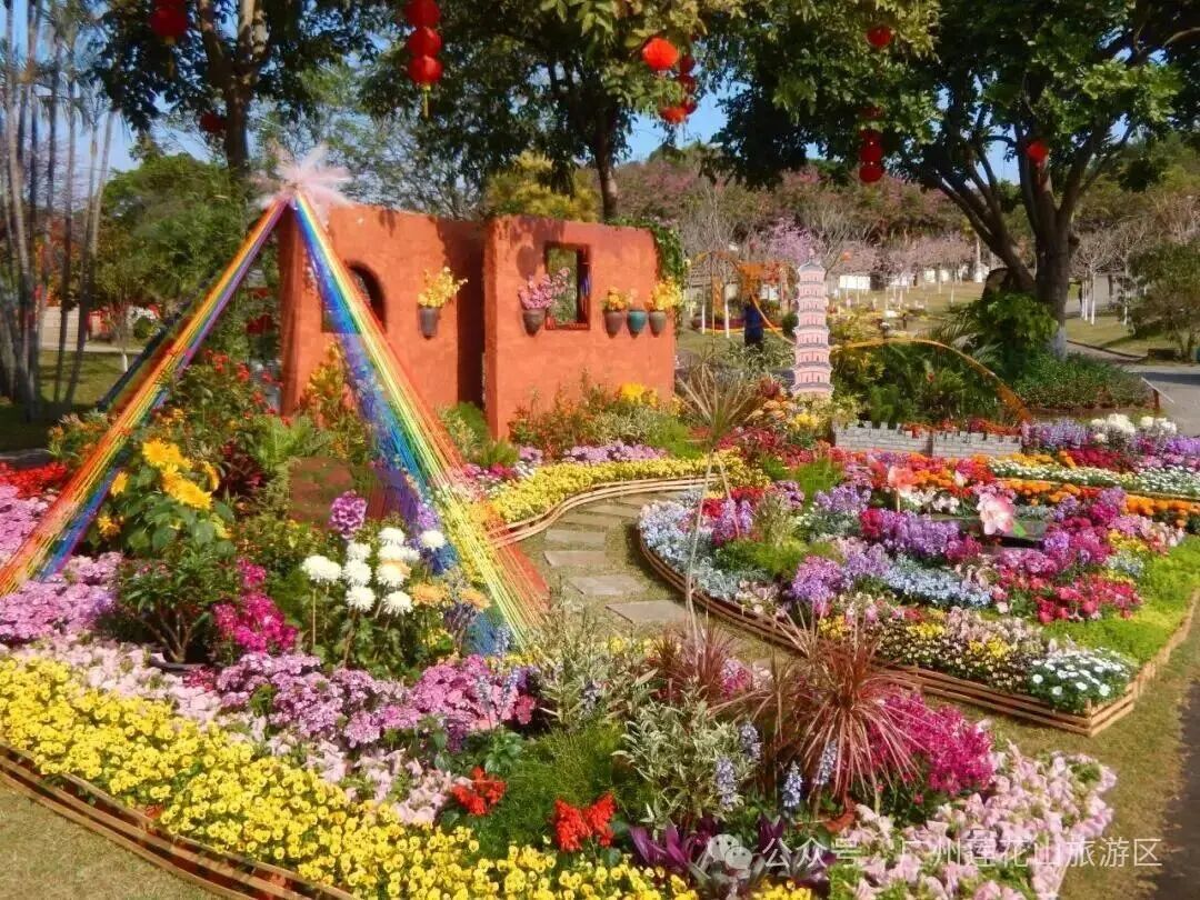 灵蛇摆尾,收尽流光成锦卷;骏马扬鬃,踏开春色以此程。辞蛇取“金蛇狂舞”之意,蛇形主体纯用岭南竹编打造,蜿蜒遁地成双拱门供游客穿行;蛇身缀黄橙蝴蝶兰假花,似金鳞熠熠、又如花海漫卷,蛇头回首望尾的造型,暗收旧岁意趣,竹编质朴与繁花明艳碰撞出独特年味。