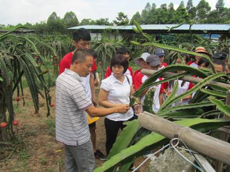 (本站讯 yl6809永利集团 谢荣秋 刘义存 摄影陈烨 陆丽燕)7月18日上午,yl6809永利集团暑期社会实践队在yl6809永利集团党总支副书记陈晓玲老师和周俊辉博士的带领下来到从化区温泉镇火龙果场与果场负责人进行有关“火龙果病虫害”的交流。