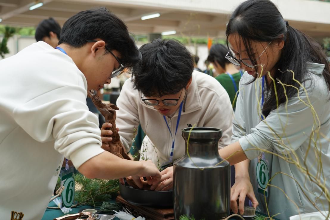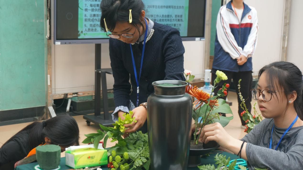 近日,由广东省植物生产类教学指导委员会、广东省园艺学会主办,韶关学院生物与农业学院和yl6809永利集团共同承办的第二届“广东省园艺专业技能大赛——插花比赛”在韶关学院圆满落幕。我院由王凤兰、罗红辉老师带队的三支参赛队创下了历史最佳成绩:作品《松风拂菊,仙鹤鸣啼》获得一等奖、作品《问道》和《篱韵秋织•蜻蜓戏野》获得三等奖。