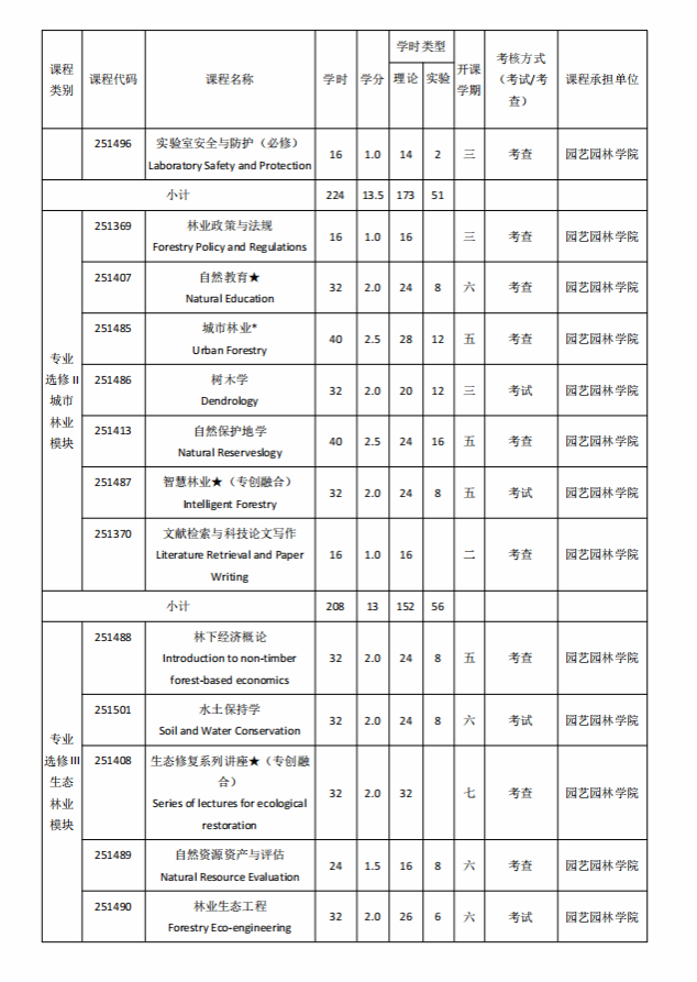 林学专业人才培养方案